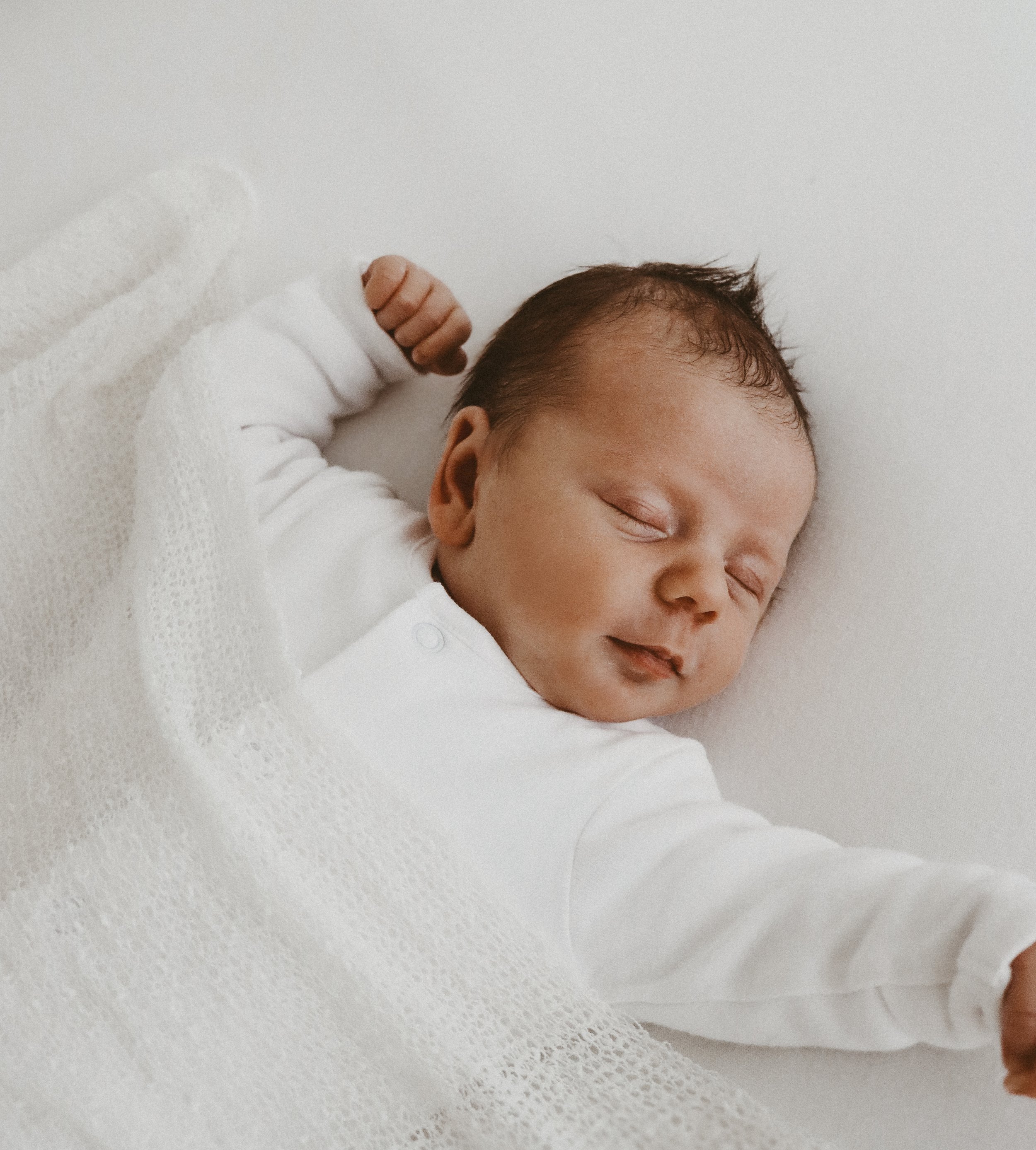 My style is I absolutely adore a more natural approach to baby photography. This is where I will photograph your baby, just the way they are, in their natural sleeping positions, their yawns, little tiny fingers and toes, the way they just cuddle into your chest. But occasionally I like to include some slightly more beautifully posed images of your baby.
